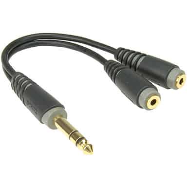 Y-Cable black 0,2m, Jack 3p – 2xMini Socket 3p, gold contacts