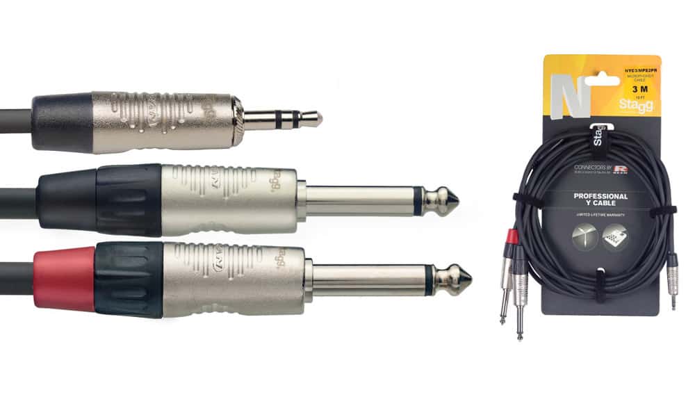 N-Series Y-cable – Stereo Mini Phone Plug / 2 x Mono Phone Plug. With REAN connectors. ROHS compliant. Length: 3m/10ft – black.