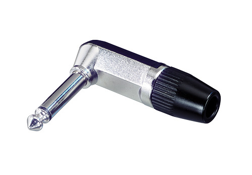 2 pole 1/4” right angle plug, metal housing, plastic bushing