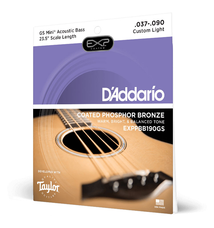 EXPPBB190GS is a light gauge set of Phosphor Bronze wound strings optimized for Taylor’s GS Mini acoustic bass that utilizes EXP coating for extended lifespan. Since D’Addario introduced Phosphor Bronze guitar strings in 1974, they have been synonymous with warm and well-balanced acoustic tone.