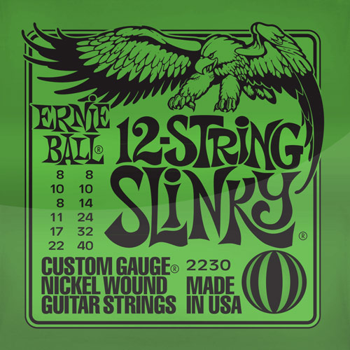Slinky 12-string Nickel Wound Electric Guitar Strings. Gauges .008 .008, .010 .010, .014 .008, .024w .011, .032 .017, .040 .022w.
