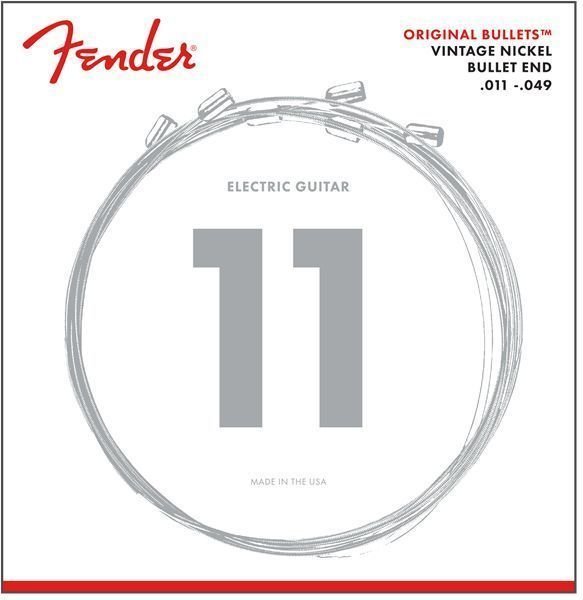 Medium 6 string set for electric guitar from Original Bullets Pure Nickel series that delivers a smooth feel with reduced finger noise, and rich, warm tone with abundant harmonics. Strings are made with steel core and pure nickel winding with patented bullet-ends that create a sonic coupling between the string and bridge block – that provides solid tuning stability and improved sustain. Strings are ideal for blues, jazz and classic rock. Gauges: .011, .014, .018, .028, .038, .049.