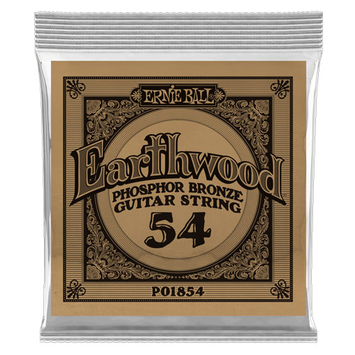 .054 Earthwood Phosphor Bronze Acoustic Guitar String. Single. Made from 92% copper, 7.7% tin, 0.3% phosphorus wire wrapped around tin plated hex shaped steel core wire. These guitar strings have a light orange, gold color and provide a mellow, ringing sound, with excellent clarity.