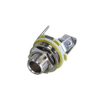 2 pole open 1/4” jack, 2 contacts, with washer and nut, panel thickness 6.5 mm, with 0.205″ faston tabs