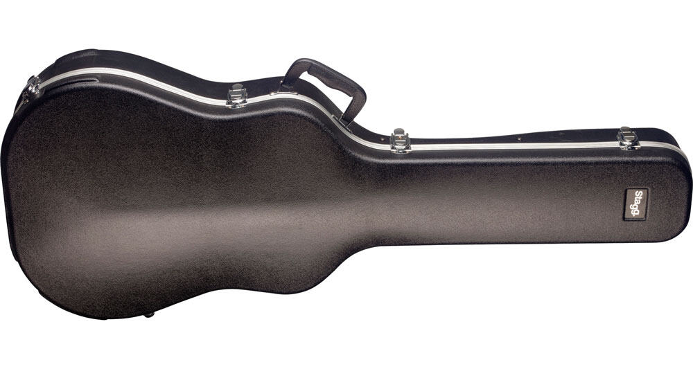 Basic series lightweight ABS hardshell case for western / dreadnought guitar. Padding: High-density foam. Material: Moulded ABS (shape), aluminium (reinforcement edges) and black plush (interior). Grip: Large moulded handle. Fastener: Chrome latches. Special feature: 1 internal case for small items. Dimensions: 118 x 39 x 9 cm (46.5 x 15.4 x 3.5"). Colour: Black.