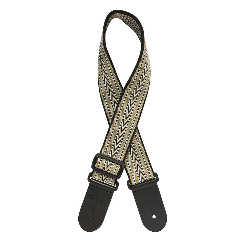 STAGG WOVEN COTTON GUITAR STRAP WITH RAFTER PATTERN WHITE