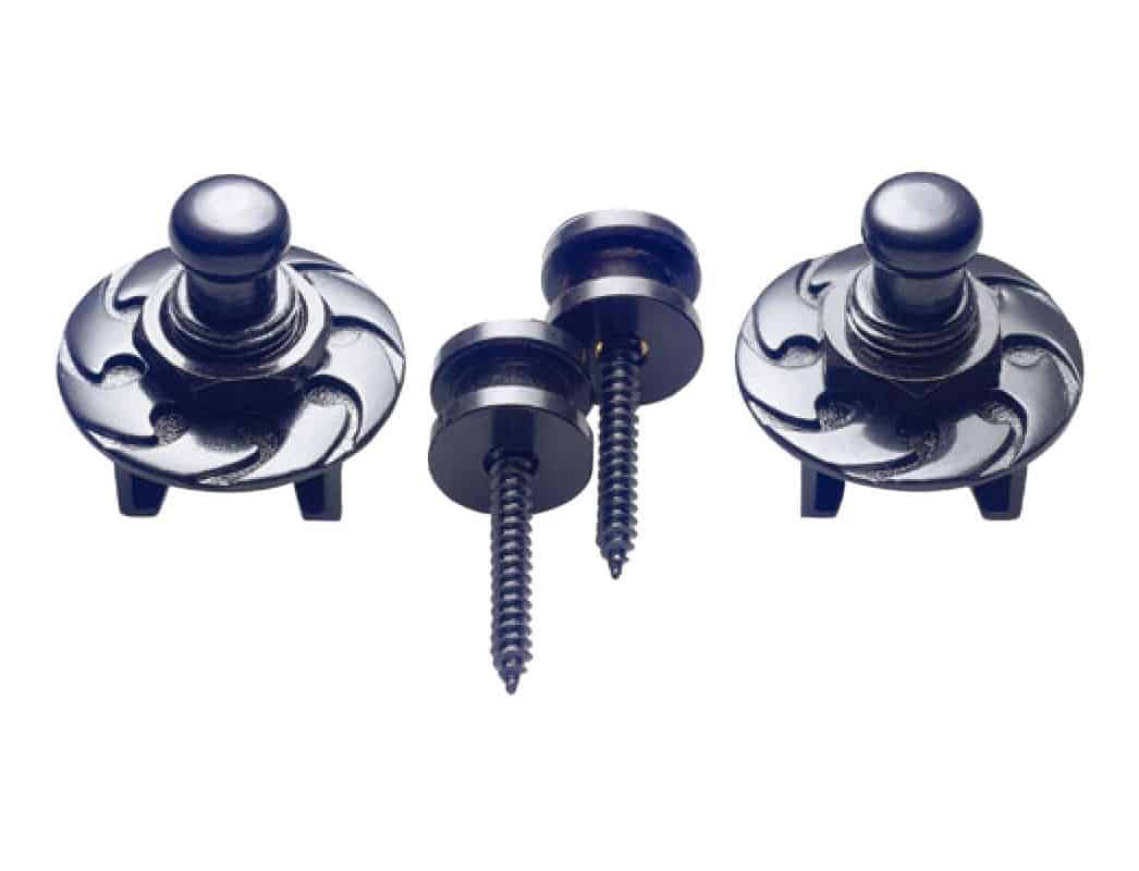 Strap Locks for guitar and electric bass. Locks straps into place. Black.
