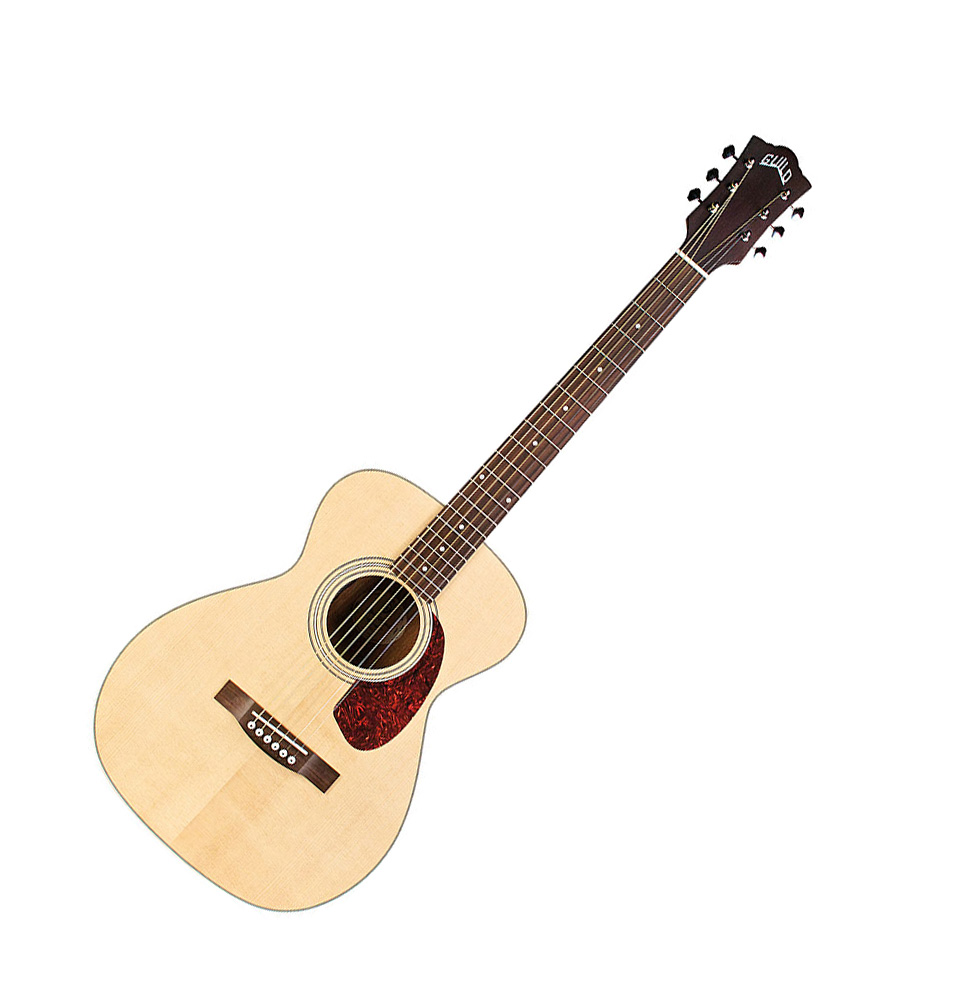 It pays homage to Guild’s F-20, a small-bodied marvel that became popular in folk music in the ’60s. This petite guitar is ideal for fingerstyle playing and light strumming. It has a solid Sitka spruce top and arched mahogany back, a classic wood combination that produces a balanced voice with plenty of overtones. It is equipped with an Ap-1 pickup system.