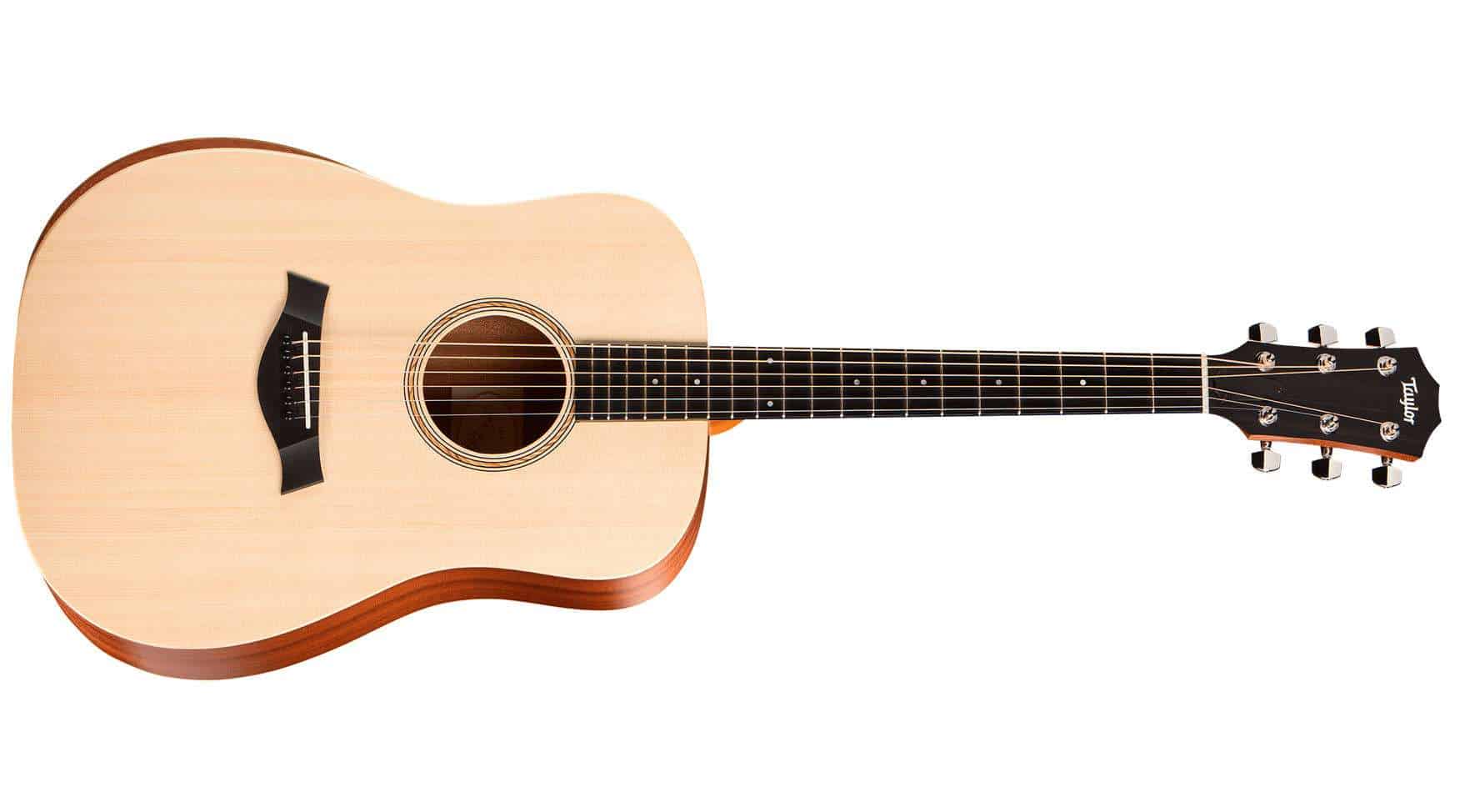 Steel-string guitar without electronics. Dreadnought body shape, solid sitka spruce top, Academy series bracing, sapele plywood back & sides, sapele neck, ebony fredboard and bridge, dot fretboard inlays, 20 frets, scale: 632 mm, nut width: 42.8 mm, micarta bridge. Colour: Natural. Incl. Taylor gig bag.