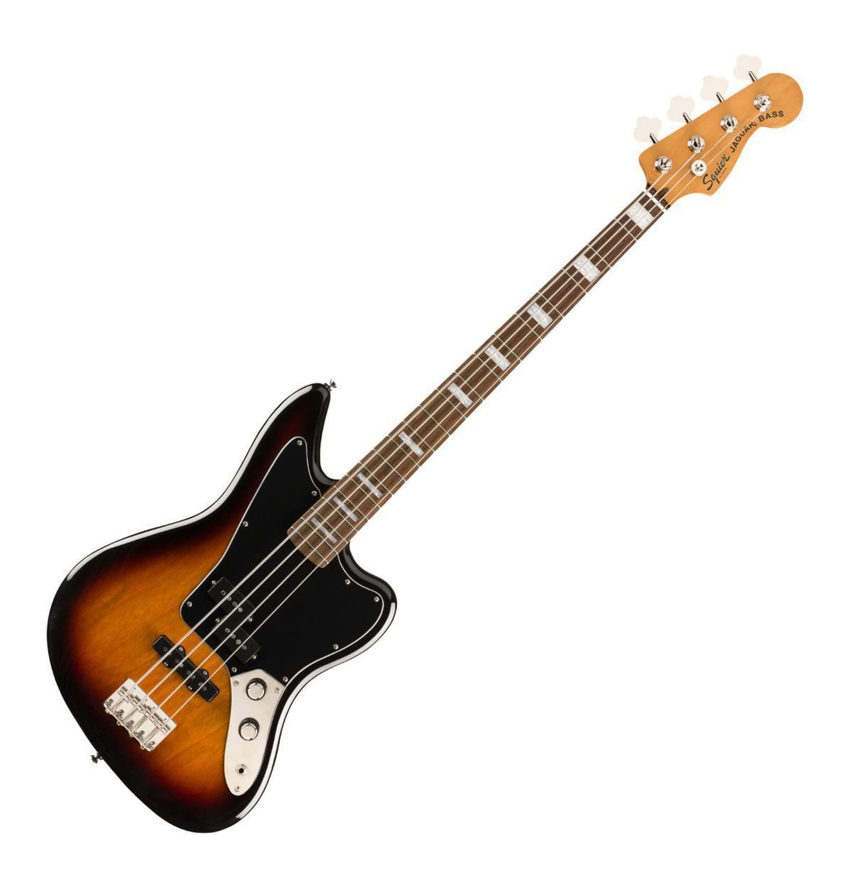 The Classic Vibe Jaguar Bass turns up the volume on retro style, combining the iconic body shape of the Jaguar with the massive tone of its Fender-Designed alnico pickups. Player-friendly features include a medium 32” scale length, a slim, comfortable “C”-shaped neck profile with an easy-playing 9.5”-radius fingerboard and narrow-tall frets as well as a vintage-style bridge with slotted barrel saddles. This throwback Squier model also features 1970s-inspired headstock markings, rich-looking nickel-plated hardware and a slick vintage-tint gloss neck finish for an old-school vibe.