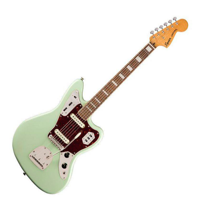 The Classic Vibe ‘70s Jaguar® turns up the volume on retro style and produces incredible tone courtesy of its dual Fender-Designed alnico single coil pickups. Small hands will appreciate the short 24” scale length and slim, comfortable “C”-shaped neck profile with an easy-playing 9.5”-radius fingerboard and narrow-tall frets. This Jaguar is faithful to the original with a vintage-style tremolo system for expressive string bending effects and floating bridge with barrel saddles for solid string stability. This throwback Squier model also features 1970s-inspired headstock markings, rich-looking nickel-plated hardware and a slick vintage-tint gloss neck finish for an old-school vibe.