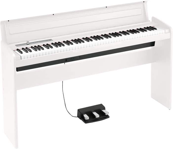 Emanating a sense of quality that exceeds its class, this slim, digital piano features a beautiful and rich piano sound, keyboard cover, a one-piece stand, and a three-pedal unit. 88-key digital piano, NH-keys (Natural Weighted Hammer Action), 3-level touch control, 10 sounds, 120-note polyphony, 10 demo songs, reverb and chorus, 3 pedals, 2 headphone outputs, MIDI Out, 2x 11W speaker system, incl. power supply, stand, pedal with cable. Dimensions: 1365 × 274 × 781 mm (WxDxH). Weight: 23,3 kg.