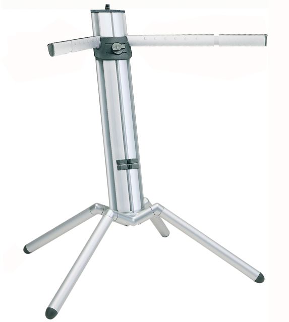 Baby-Spider keyboard stand, equipped with a pair of extendable support arms, a 3/8" or 5/8" threaded connector for the attachment of microphone booms and. Maximum load per tier: 35 kg.