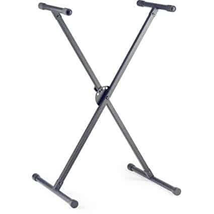 X style keyboard stand. Height range: 65 to 95 cm / 25.6 to 37.4 in. 5 positions with safety lockpin. Black finish. Max load capacity: 30 Kg/ 66 lbs.
