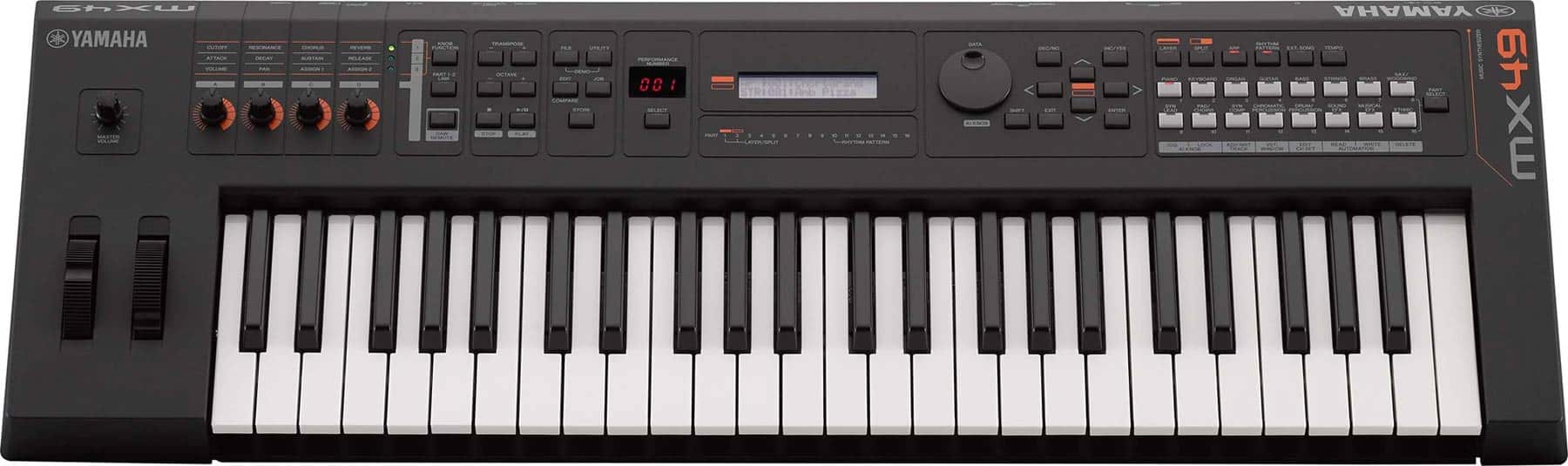 Synthesizer; 49-Keys, AWM2 tone generator, 128-notes polyphony, 16 parts multi timbral; VCM-effects, 1000 voices based MOTIF XS waveforms, WAV-, AIFF- and standard MIDI playback from USB, USB-audio/MIDI-interface with iOS support, pitchbend- and modulation wheel, sustain and foot controller connection; LCD-display; incl. Steinberg Cubase AI, colour: black.