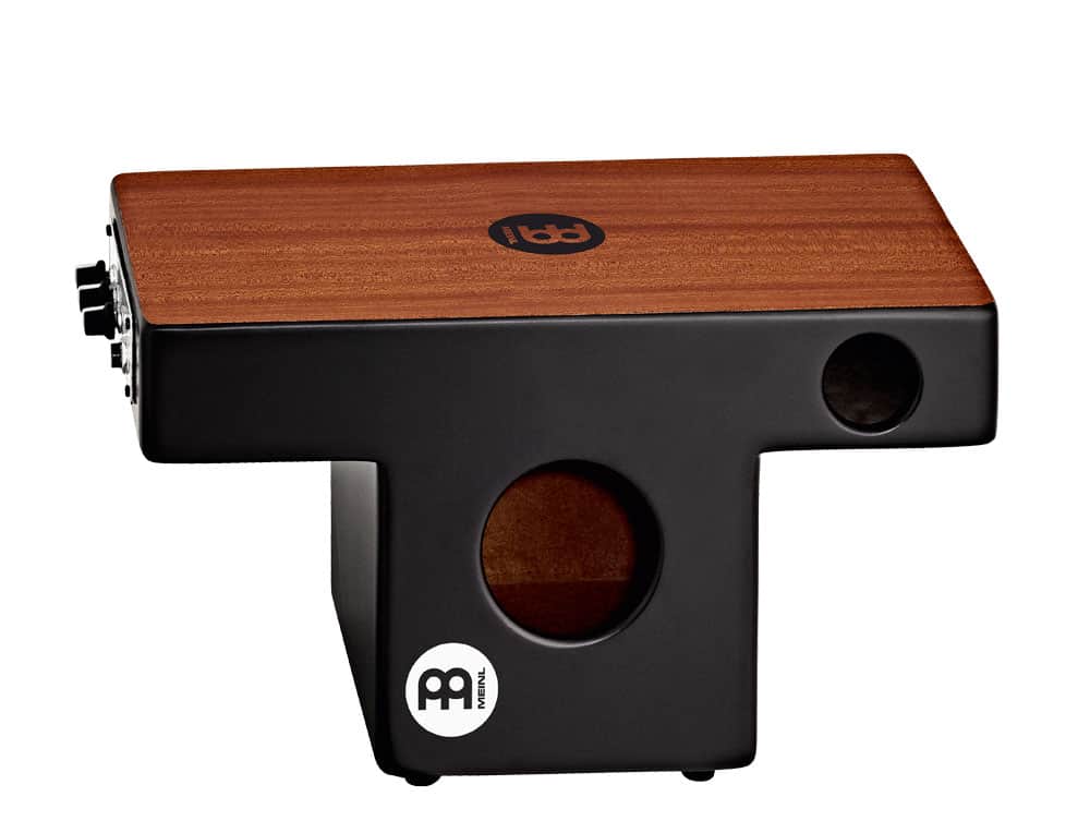 Equipped with dials to mix your sound, the Pickup Slap-Top Cajon gives you the ultimate playing experience when extra amplification is needed. This cajon contains a passive pickup system that has bass, snare, and tone controls, along with a high quality output jack. A mahogany playing surface with internal snares delivers outstanding crisp slap tones and punchy bass notes. Play towards the middle for deep bass and on the sides for snare sounds. The forward facing sound port helps the cajon to project in acoustic settings.