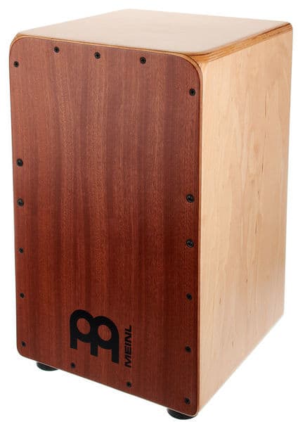 Built from Baltic birch wood and outfitted with specially wound metal strings that span the inside of the playing surface, MEINL Woodcraft Professional cajons deliver well-defined snare and bass sounds. The birch construction with 12mm thick body allows players to dig in with plenty of attack and a warm tone. Internal fixed metal strings add a crisp and sensitive snare effect that makes it easy to produce deep back beats and articulate finger rolls. The elegant mahogany and makah-burl frontplate finish options add striking aesthetics as well. Rounded corners on the playing surface offer total comfort while maximizing your touch.