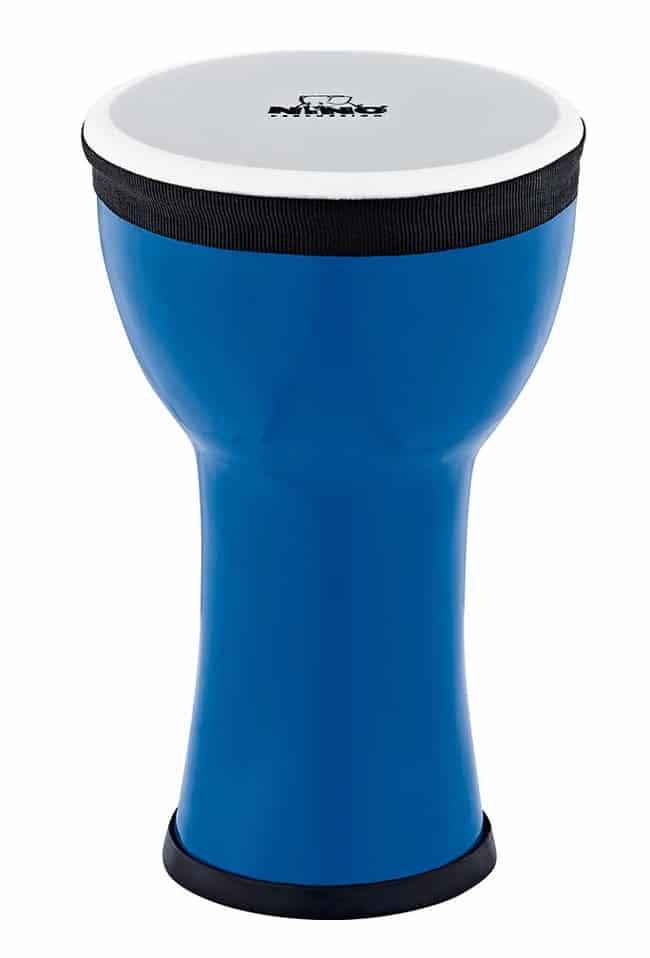Mini djembe, synthetic shell, pre-tuned plastic head, ultra lightweight, compact size, 6” diameter and 10 1/2″ tall. Color: Blueberry. Suitable for children of age 3 years and above.