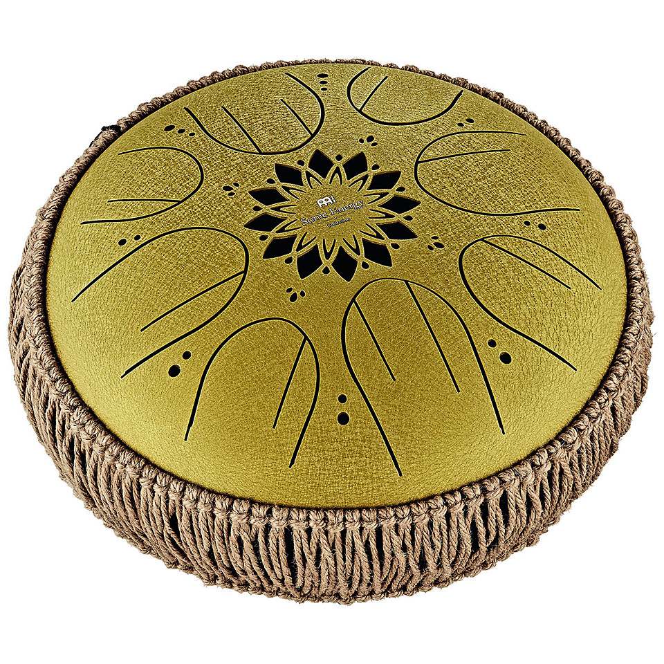 The Meinl Sonic Energy 10″ Medium Octave Steel Tongue Drum is made of high-quality stainless steel. Its eight octavated notes deliver the tones in two octaves. This creates a wonderful, meditative sound similar to the tone of a handpan. A sound hole located at the bottom of the drum can be sealed with a silicon plug to provide an even more compact sound. Three silicone feet at the bottom keep the drum from slipping. The Medium Octave Steel Tongue Drum can be played with your fingers or mallets. To begin playing, simply place it on a flat surface or your lap. The drum comes with two wooden mallets with soft-wrapped rubber heads, and a nice carrying bag with zipper and handle.