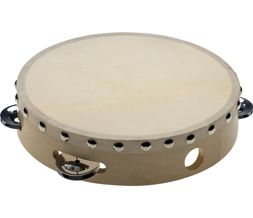 8" pre-tuned wooden tambourine with rivetted head and 1 row of jingles. Frame: Birch. Skin: Goat skin. Jingles: Stainless steel.