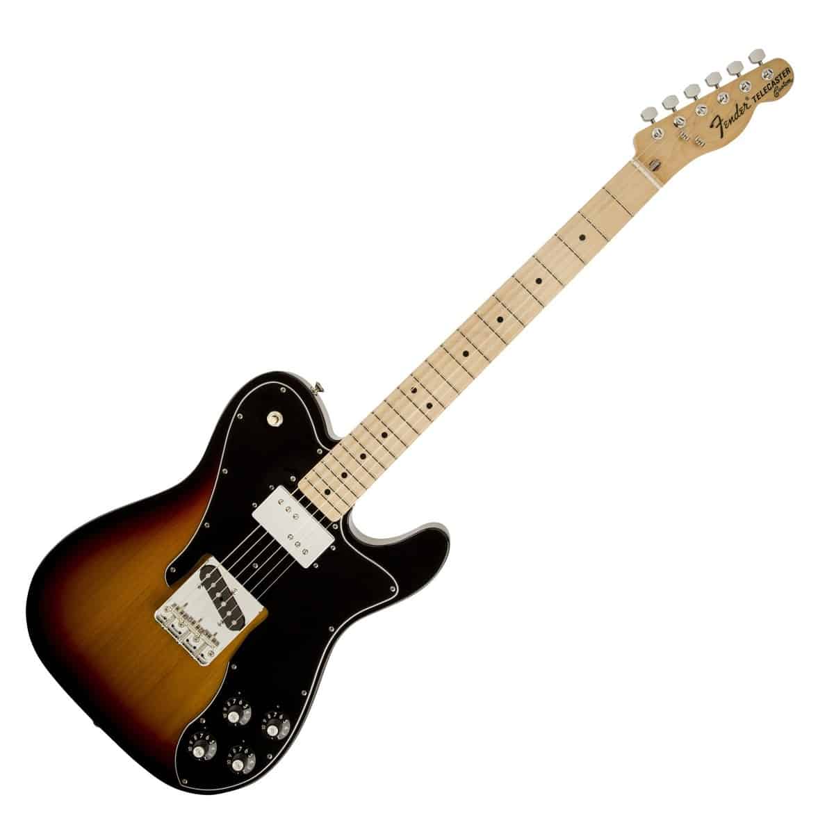 Like its ancestor, the Classic Series 72 Telecaster Custom combines the tradition of a single-coil bridge pickup with the supercharged sound of a humbucking neck pickup. Features include an alder body, maple neck with three-bolt plate and Micro-Tilt adjustment, maple or rosewood fingerboard, single-coil Telecaster bridge pickup, Fender Wide Range humbucking neck pickup, and vintage-style bridge and tuners.