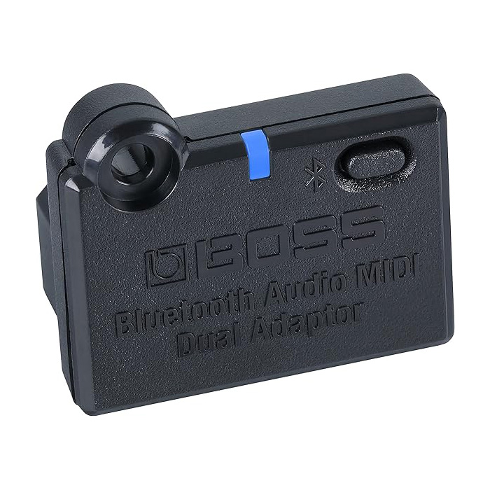 The Boss BT-Dual Bluetooth Audio MIDI Dual Adaptor is a practical addition for Boss devices that are equipped with a mounting device for the adapter. In addition to music playback via Bluetooth Audio, the BT-Dual supports Bluetooth MIDI (BLE-MIDI).