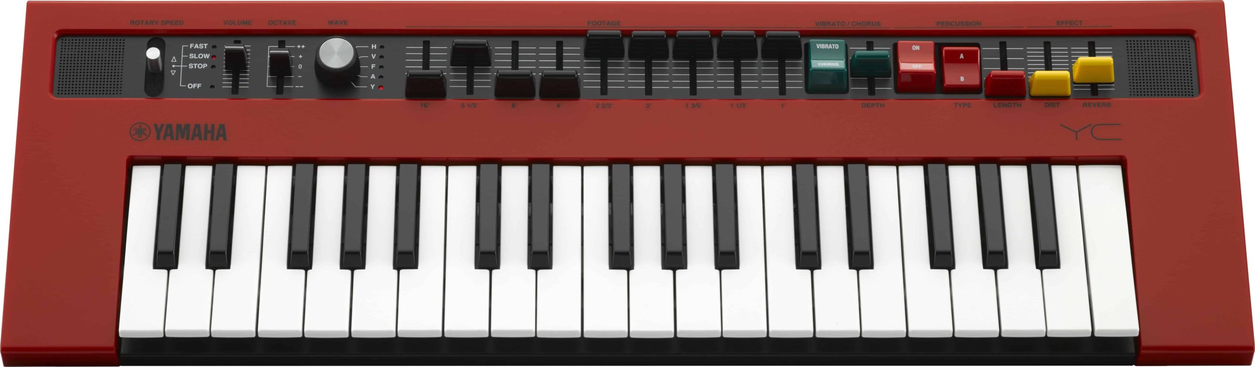 37 High-Quality mini keys synthesizer. Polyphony: 128. 5 Organ types. Rotary Speaker, Distortion, Reverb. 6 W power consumption(using PA-130 adaptor). 5h battery life. MIDI(mini-DIN IN/OUT). USB to host. 6.3 mm, stereo phone jack.