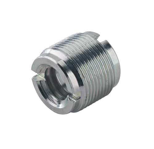 Thread adapter – zinc-plated, 1/2" and 3/8" female thread, 5/8" 27 gauge male thread.