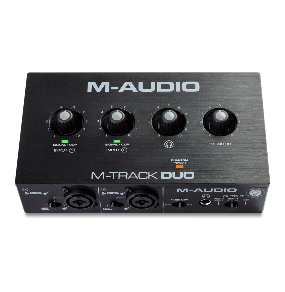 The M-Audio M-Track Duo is a 2-channel USB audio interface offering high-quality audio (16-bit) in a portable, compact style with streamlined controls. Record in conjunction with an iOS, Mac or PC device wherever inspiration strikes you!