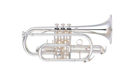 Bb cornet, Intermediate L bore, short model, monel pistons, gold brass bell, silver plated