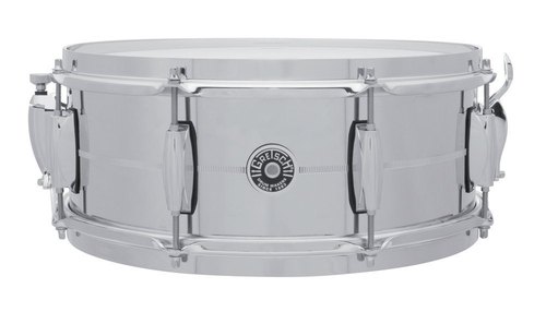 ‘Chrome Over Steel’ chrome plated 2 mm steel shell 45° bearing edge Gretsch ‘302’ steel hoops Lightning throw-off Remo heads Made in U.S.A.