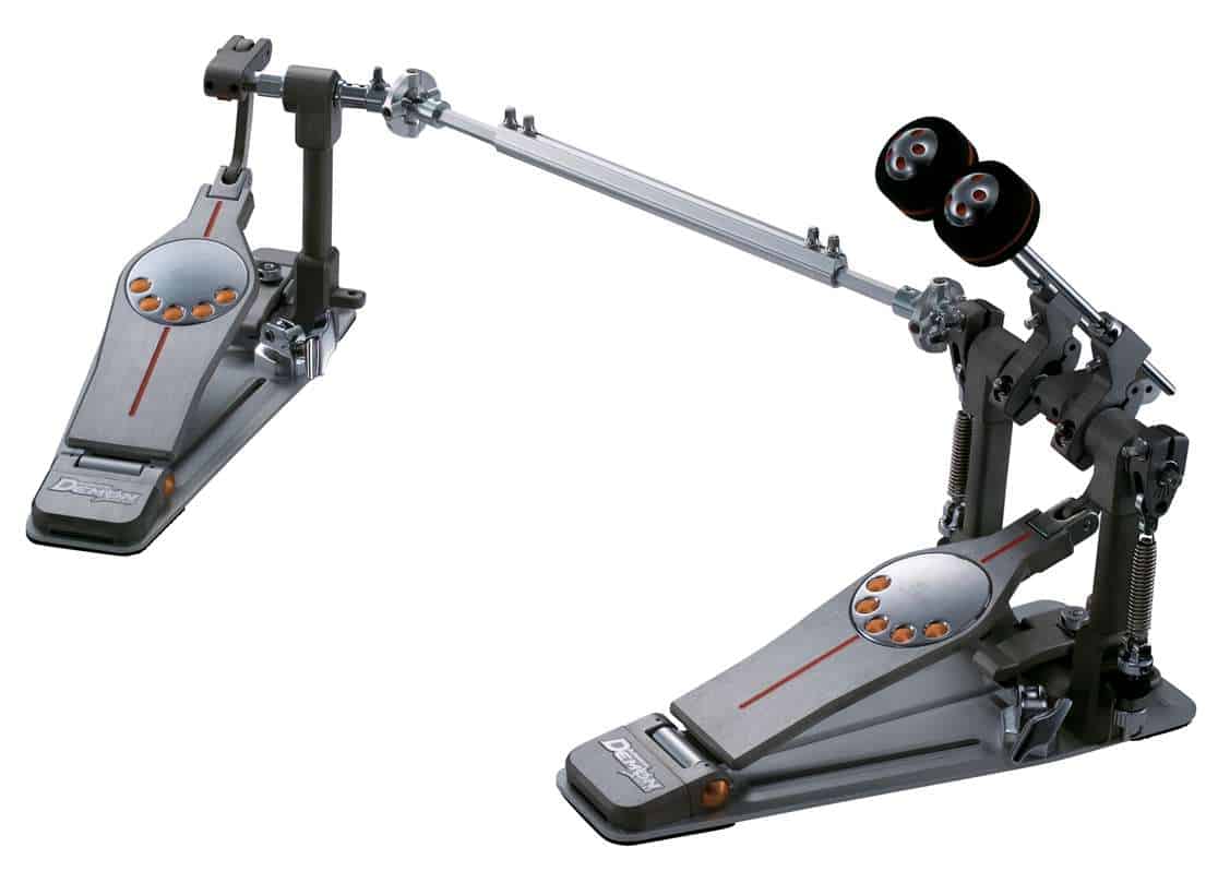 Double Bass Drum Pedal, direct link adjustment (rear position provides greater power), ‘Ninja Bearings’ (micro-polished steel balls for amazing low friction), ‘Duo Deck’ longboard, zero latency U-joints, ‘Control Core’ beaters w/Case