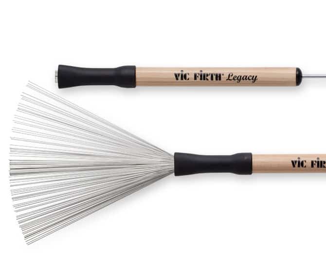 This retractable wire brush features a wood handle for a natural feel in the hand and for added sound color when played on the cymbals. The distinctive handle transitions to the wires with a rubber cover that assures a pleasing tone when played up against the rim.