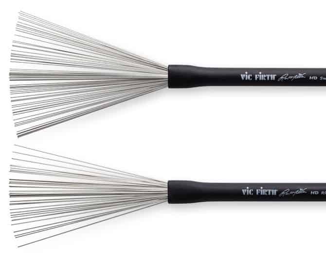 “Let’s face it,” Russ continues, “brush playing has become a bit of a lost art. The tools themselves haven’t been updated to deal with what players are now facing in live performance with Pro-Tools tracks flying in on stage, walls of amps, triggered drums, etc. Trying to get brushes to carry through a large ensemble in a big hall is very difficult. I needed brushes that could cut through the music but in a real musical way. And thanks to my work with Vic Firth, we have something that is unique and fantastic!”