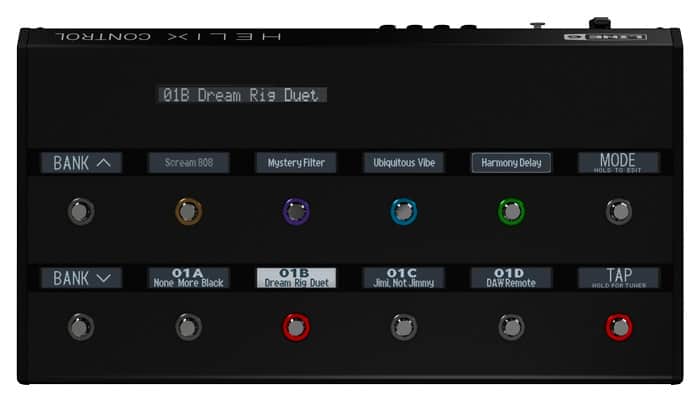 Adding the Helix Control pedal to the Helix Rack processor accesses its full functionality. Features include twelve capacitive-touch footswitches with colored LED Rings and customizable scribble strips, three expression pedal inputs, and hands-free editing when in Pedal Edit mode. No other foot controller offers these features or merges so effectively with the Helix Rack processor.