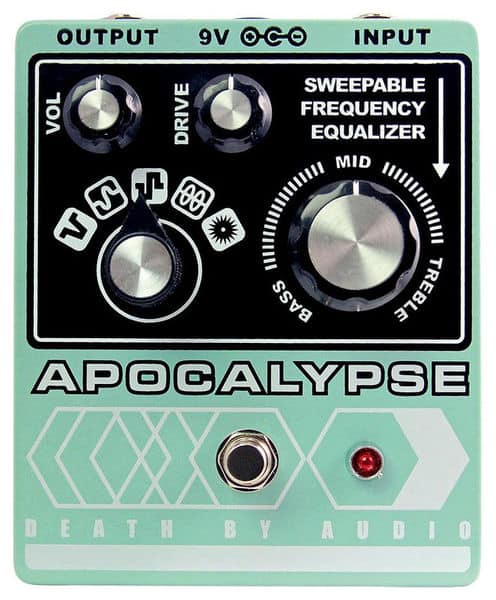 A clear sustaining overdriver run into one of 5 selectable post amplifiers into a sweepable frequency equalizer circuit. What does this mean? It’s basically a huge range of intense and usable overdrive, distortion, EQ, and fuzz effects in one.